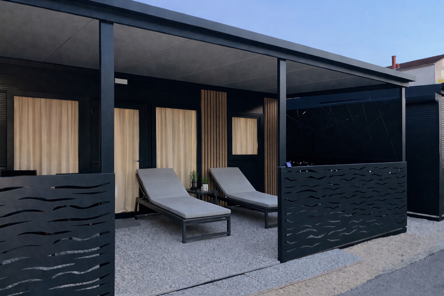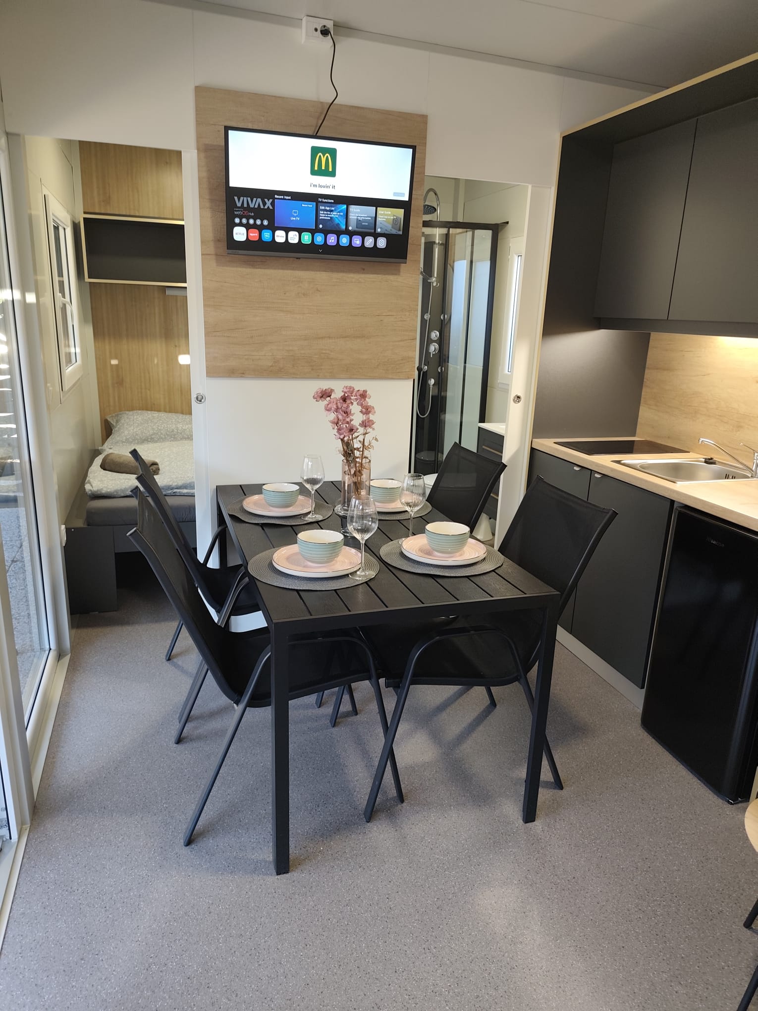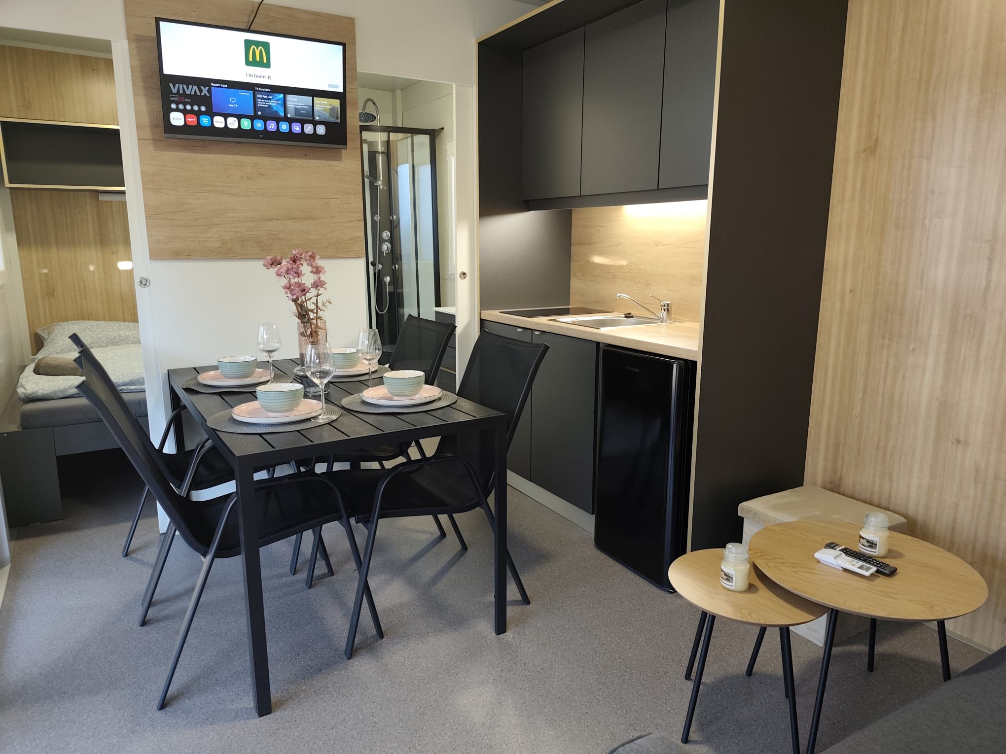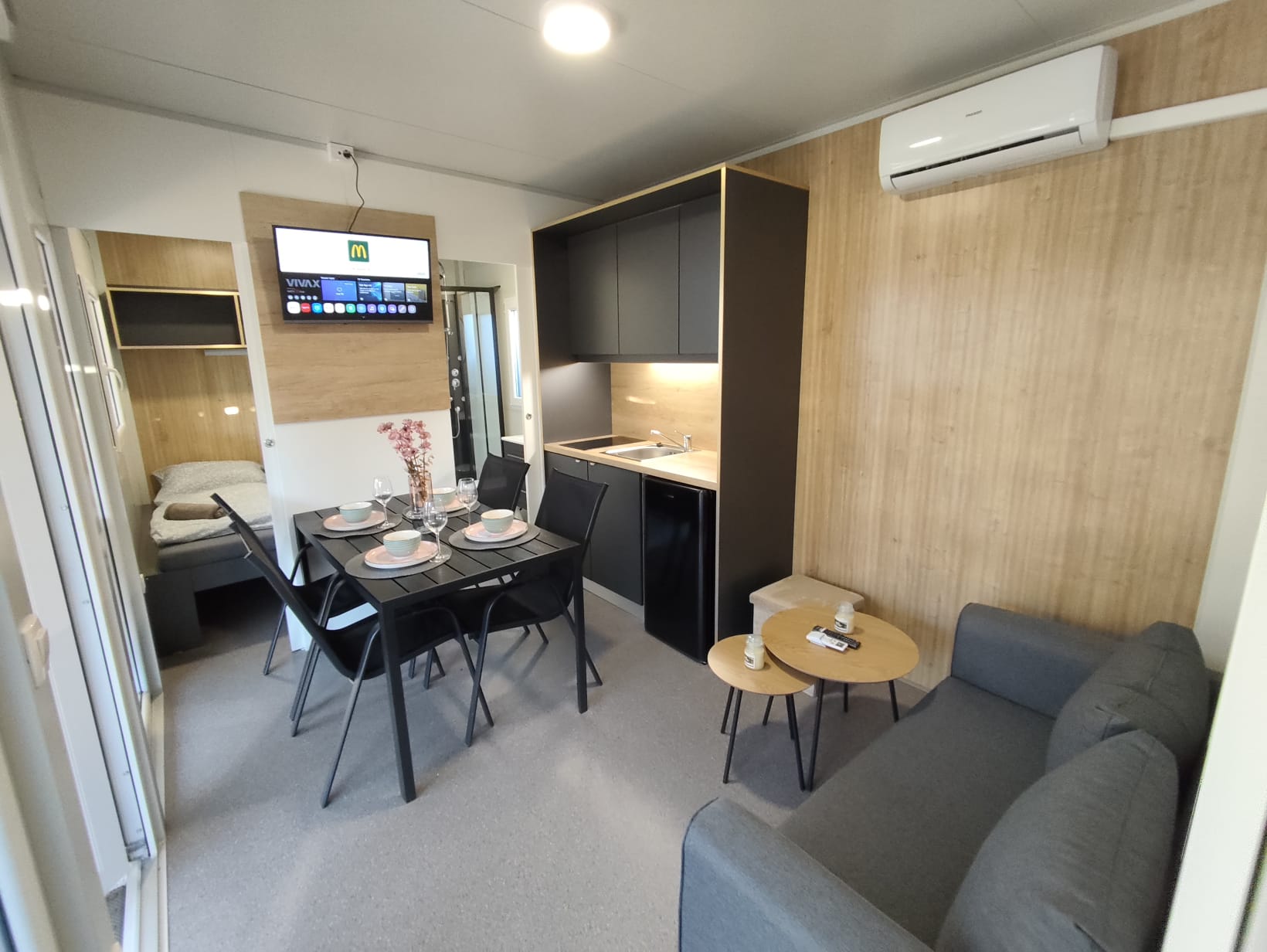 Mobile holiday home in Pakoštane – available from April 25, 2026 We invite all Croatia lovers to our cozy, fully equipped mobile home in Pakoštane. The facility will be available from April 25, 2026. The house is equipped with Wi-Fi access, a TV, an Italian coffee machine, a kettle and full kitchen equipment that allows you to freely prepare meals. It is the perfect place for quiet mornings with coffee, relaxing evenings and rest after a day spent at the seaside. Location The property is in an excellent location: just 350 meters (about 5 minutes walk) from the sea, near grocery stores: Studenac – 550 m (7 minutes on foot), Tommy – 850 m (12 minutes on foot). It is a quiet place surrounded by nature, ideal for both couples and families with children. The biggest advantage is the proximity to the sea, shops, restaurants and bars, while maintaining silence at night. You can really relax here, sleep, walk by the sea, have a drink or enjoy the Dalmatian nature among the pines and cicadas. Amenities The area around the house is completely flat - without stairs and level differences. You can walk along the sea in both directions for many kilometers. This is a great convenience for the elderly, disabled people and families with strollers. The facility is new and open to guests for the first time. The photos do not show all the terrace elements yet - in the first half of April the following will be added: * sun loungers *curtains *evening lights There are also plans to equip guests with SUP boards. ++ Additional information ++ Free parking at the house. Possibility to organize an airport transfer (one way or both ways) at an attractive price. 8>) Attractions in the area 8-) The port offers many attractions, including: *trips to Kornati National Park, * day and night submarine trips around the underwater world, * water taxis, scooters and many other attractions. About a 50-minute walk (or a short bike ride) is the charming town of Drage - a place that is definitely worth visiting. In the evenings there is a unique Dalmatian atmosphere: stone streets, restaurants, the intensely blue sea and pine trees - everything within walking distance. The price depends on the date. We offer attractive discounts for stays longer than 10 days.